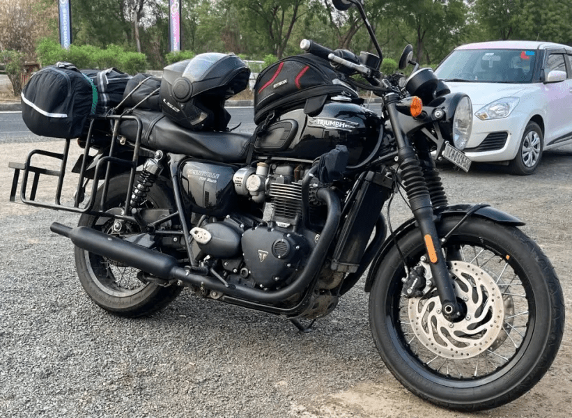 . I was quite excited to own it. To my surprise I could not handle the bike for the first 1500 kilometers. I was also not familiar with the engine and other parts of it. During the first service of it, it may be said that I took tutorial from the supervisor how to handle it in case of an emergency. Now I could handle the bike quite comfortably. Now I was looking for a good luggage carrier. I explored market in its search but could not find any suitable thing. To my utter surprise when I tested my luggage carrier that I used for Classic 500 bike, it fitted as if it was made for my triumph. Since then, I am using it.
