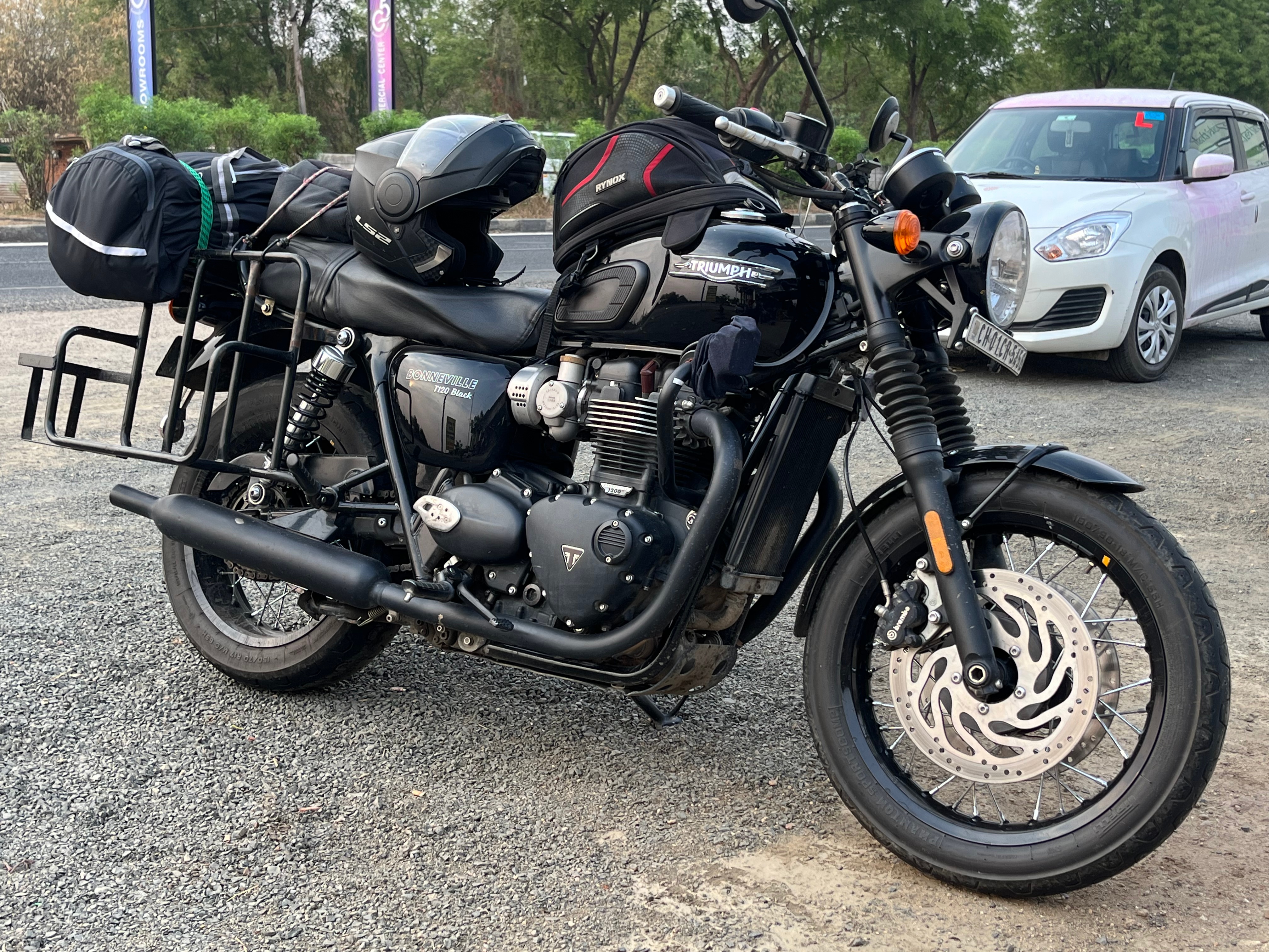 . I was quite excited to own it. To my surprise I could not handle the bike for the first 1500 kilometers. I was also not familiar with the engine and other parts of it. During the first service of it, it may be said that I took tutorial from the supervisor how to handle it in case of an emergency. Now I could handle the bike quite comfortably. Now I was looking for a good luggage carrier. I explored market in its search but could not find any suitable thing. To my utter surprise when I tested my luggage carrier that I used for Classic 500 bike, it fitted as if it was made for my triumph. Since then, I am using it.
